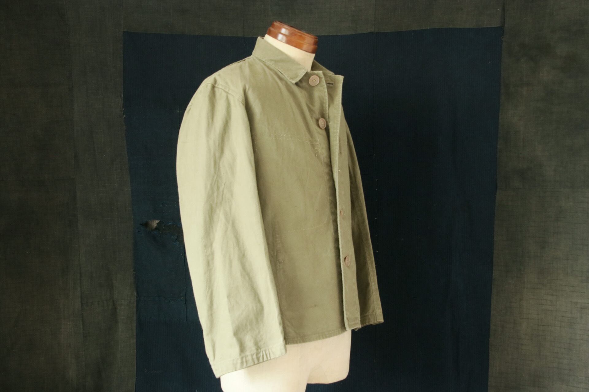 第二次大戦末期の日本軍ジャケット。スッキリとした短丈と薄いコットン生地が相まって、軽やかな印象でお召しいただけます。
