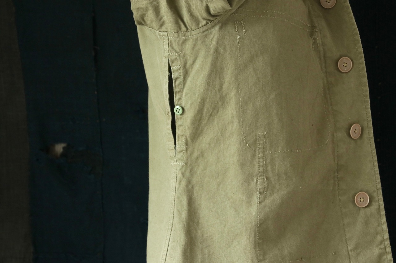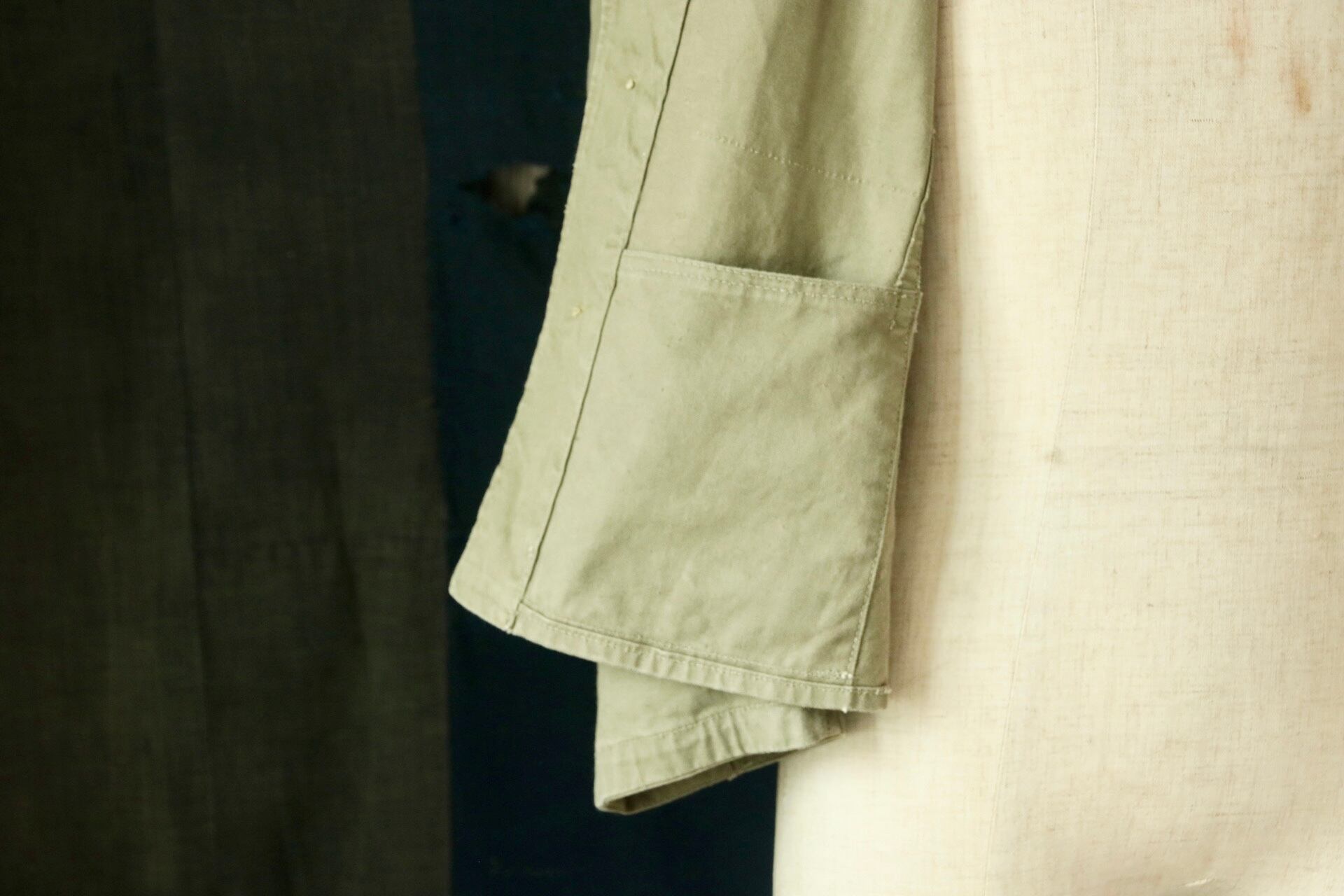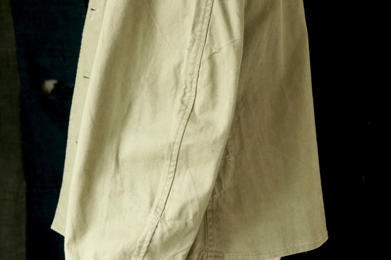 物資の限られた時代だからこそ、エルボーステッチや袖口の補強など、さりげない"造りの工夫"が光ります。
