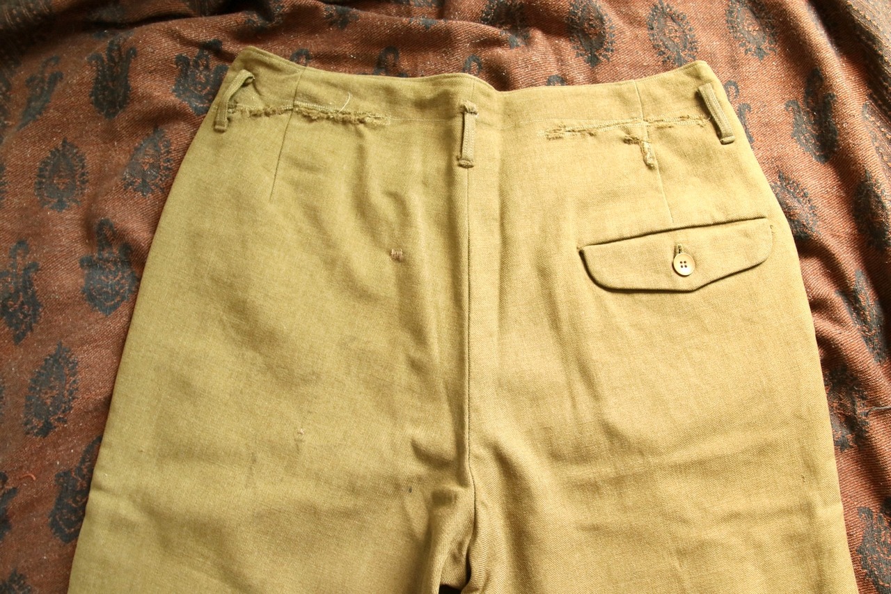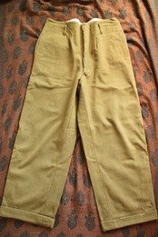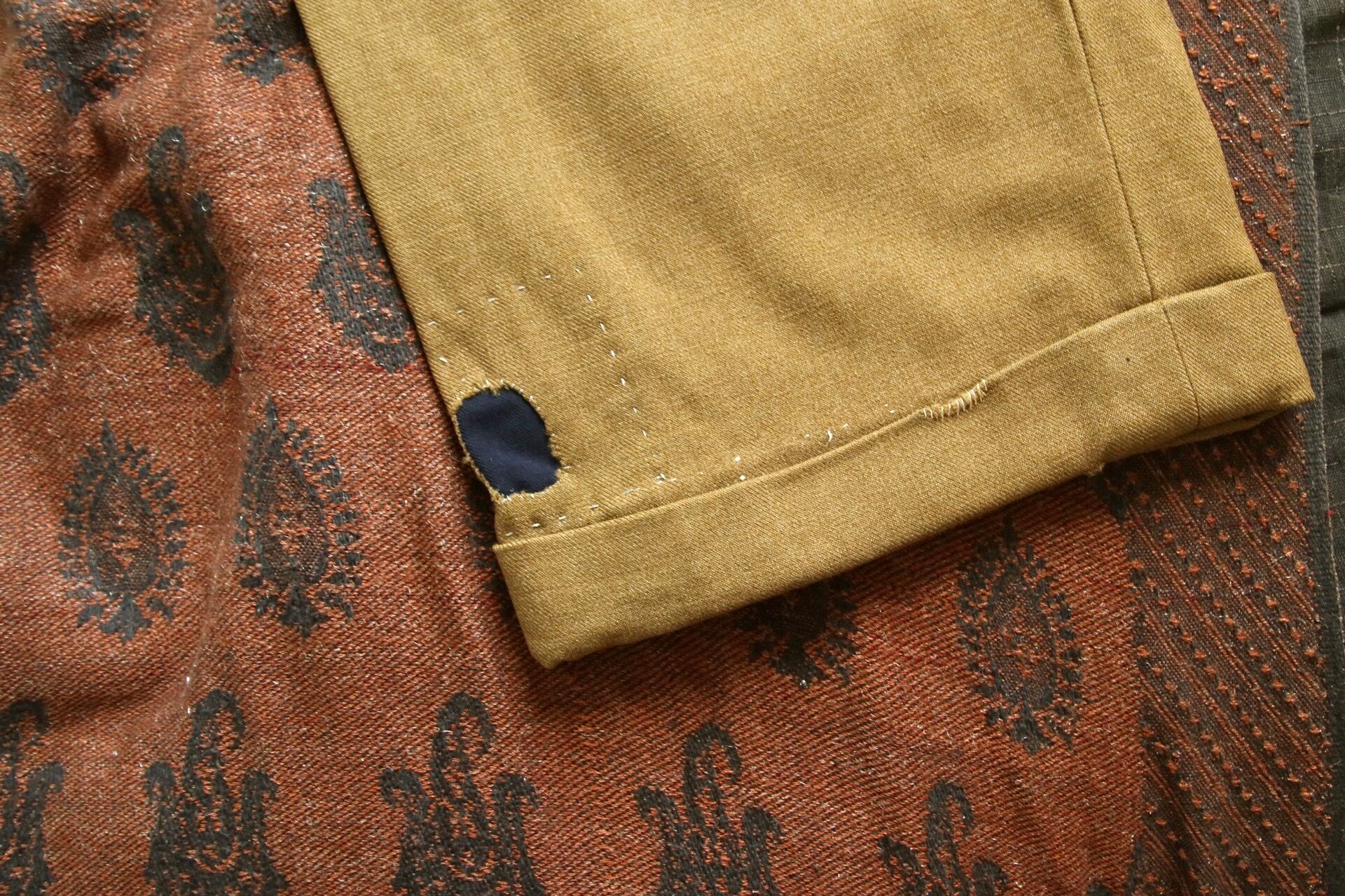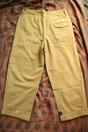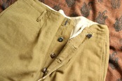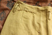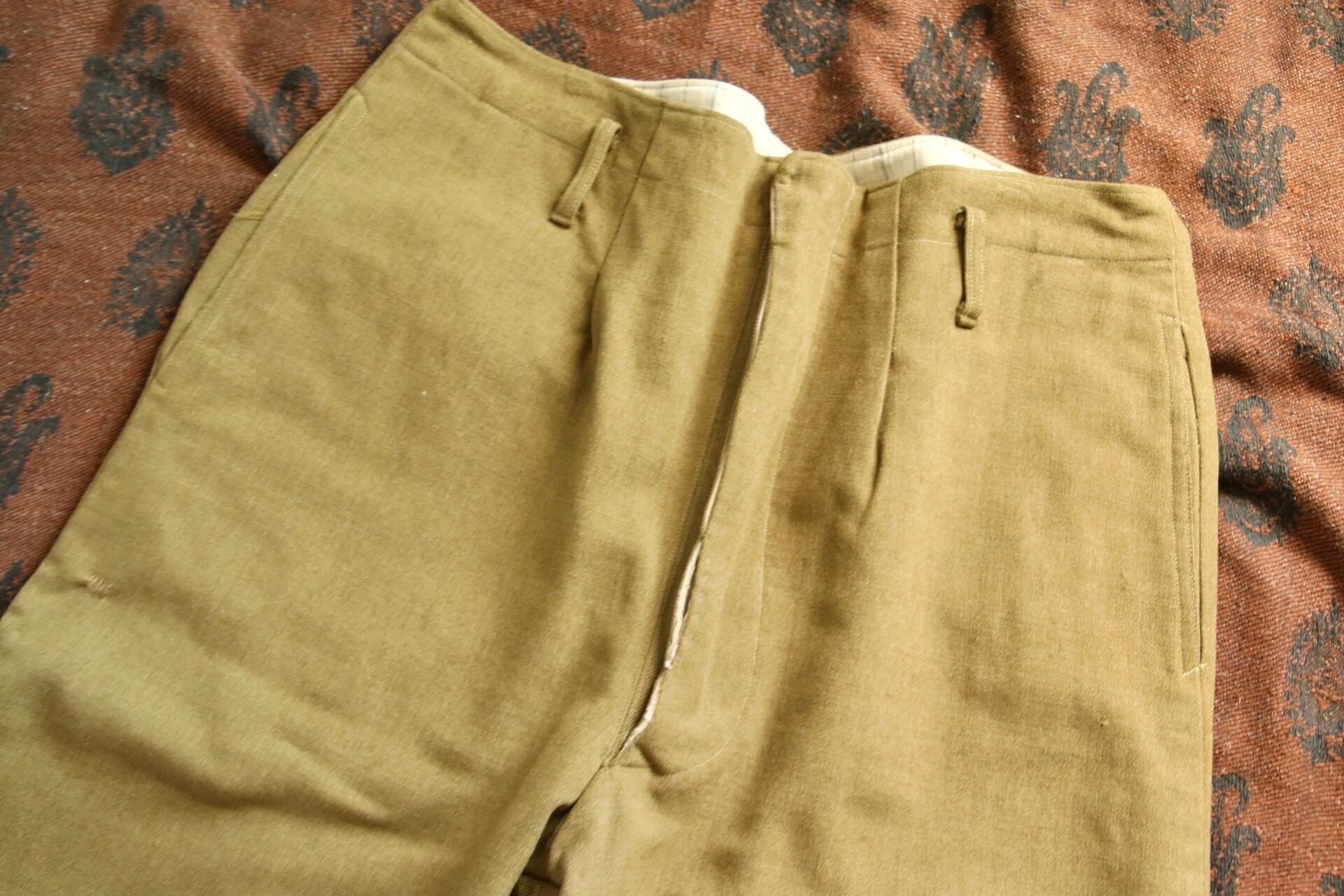 生地やパターン等、前述のtrousersと似た兄弟のようなパンツ。生地は緑に少し黄色い糸が混ざったような豊かな色合い。もちっとした生地感には、やはり安心感があります。