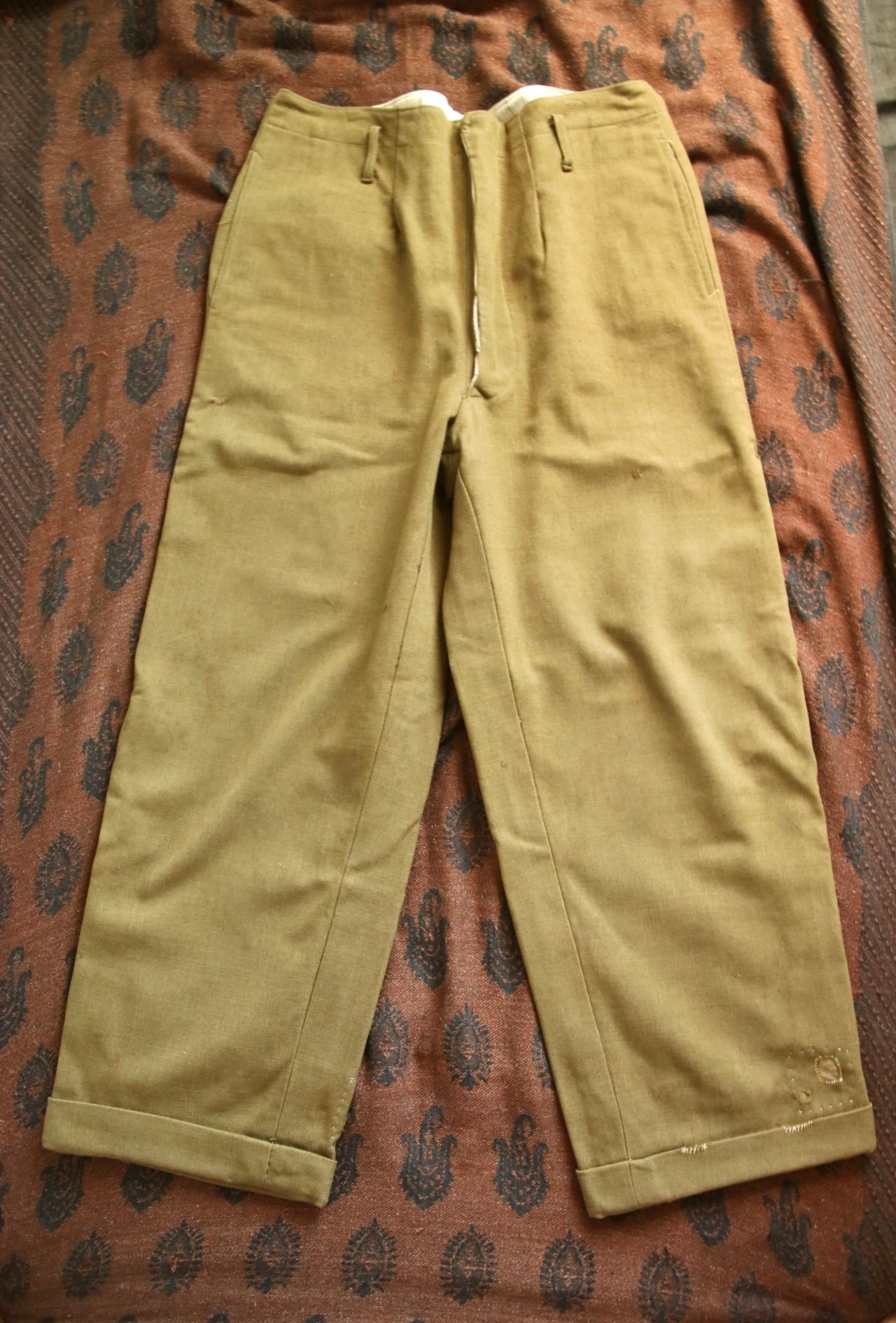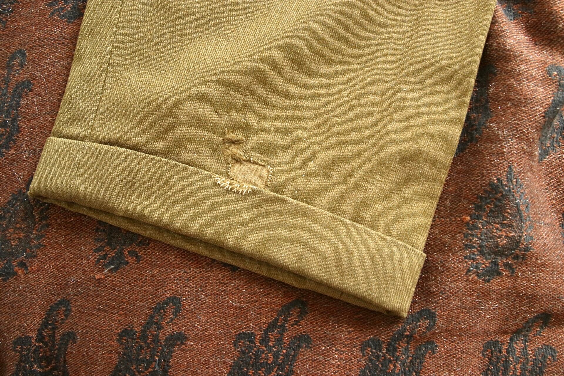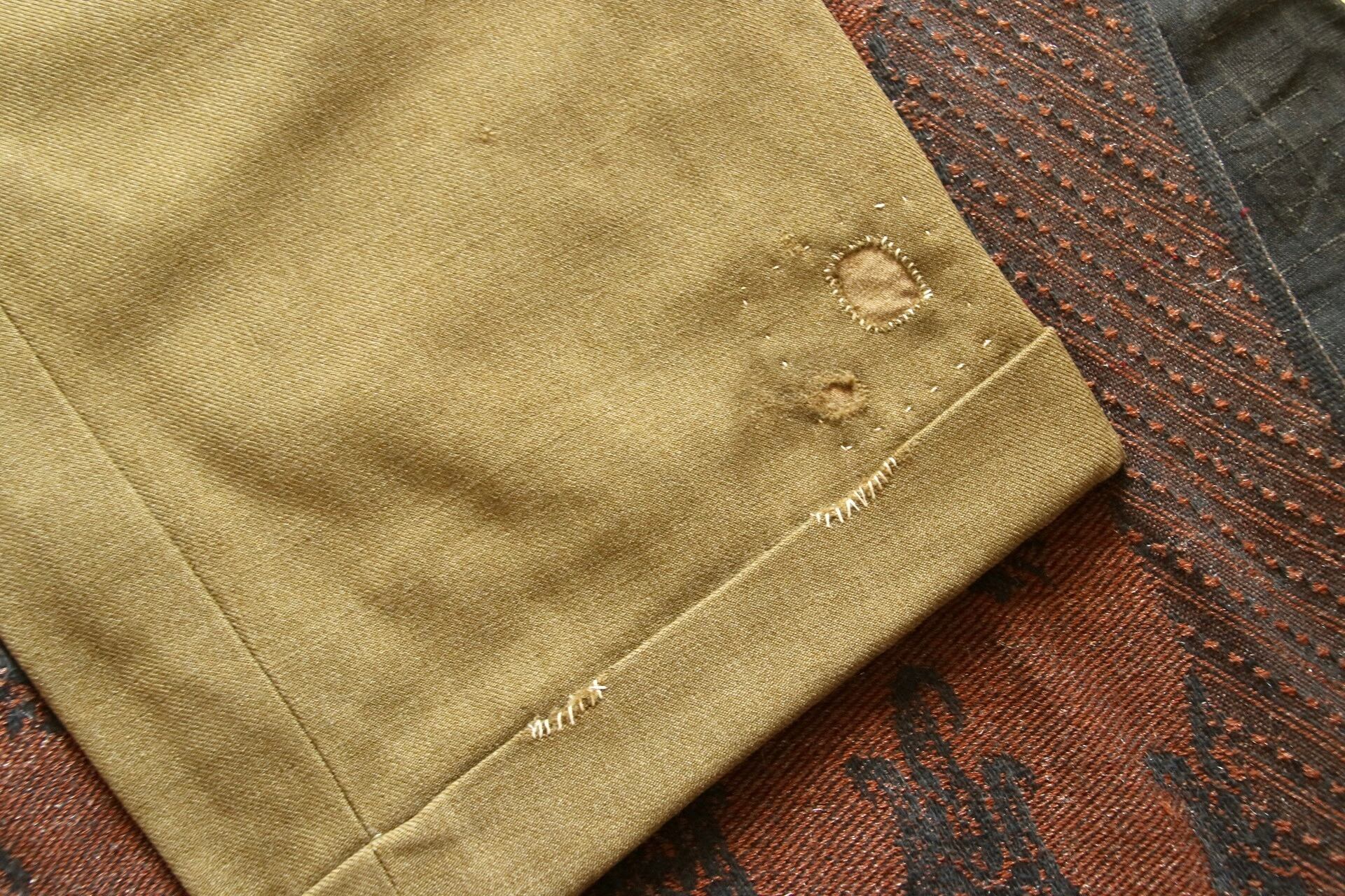 生地やパターン等、前述のtrousersと似た兄弟のようなパンツ。生地は緑に少し黄色い糸が混ざったような豊かな色合い。もちっとした生地感には、やはり安心感があります。