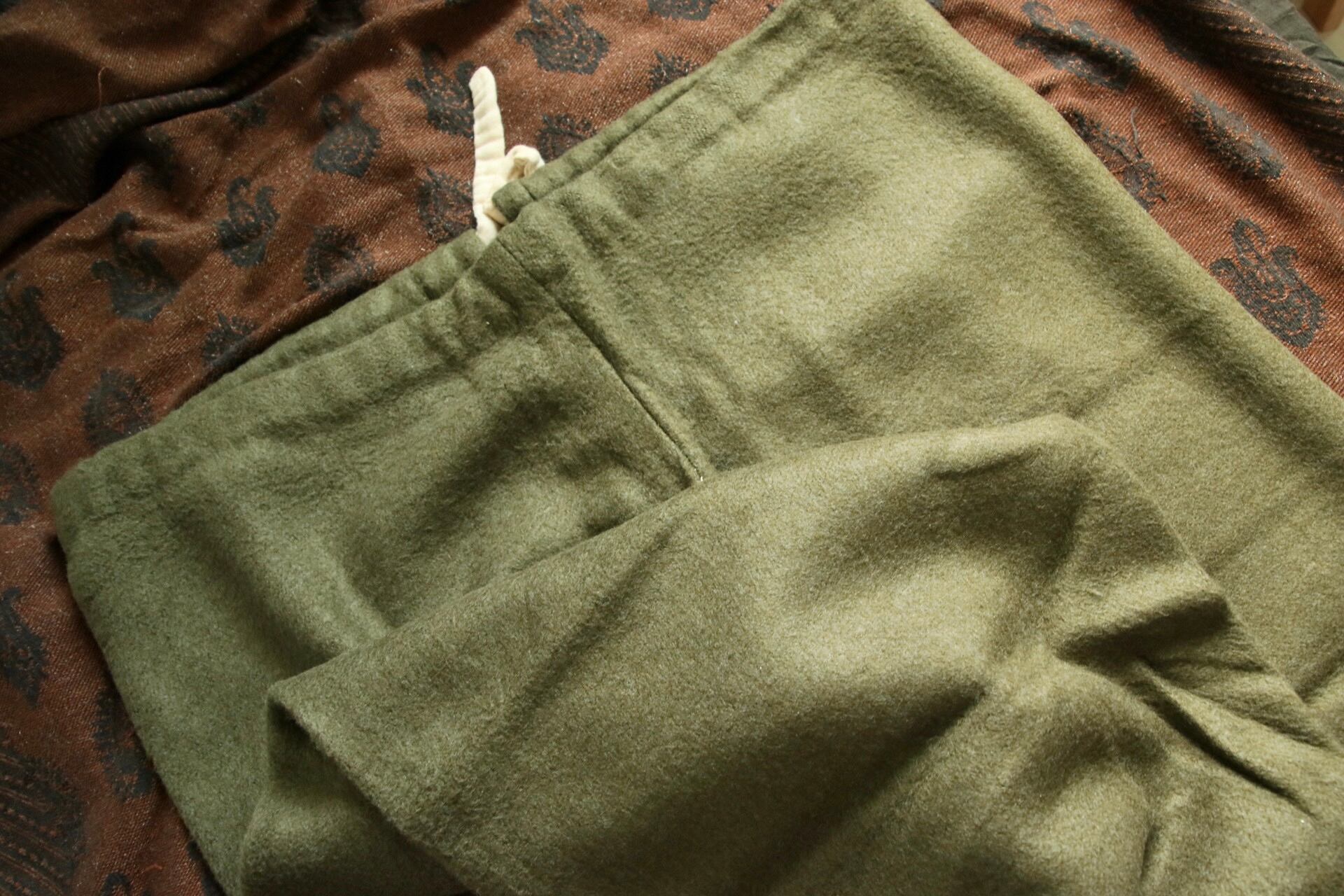 ドローコード仕様の太いパンツ。