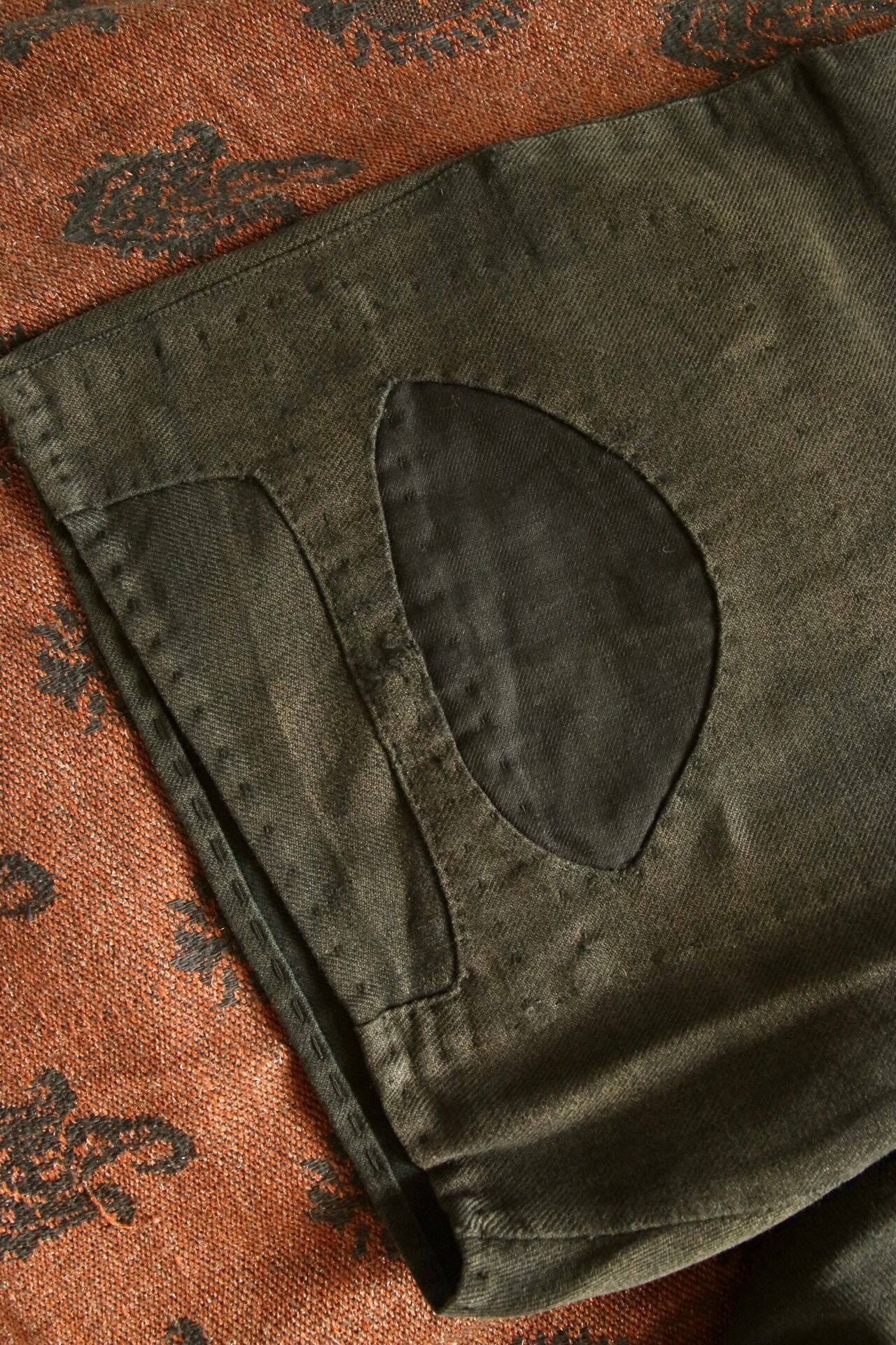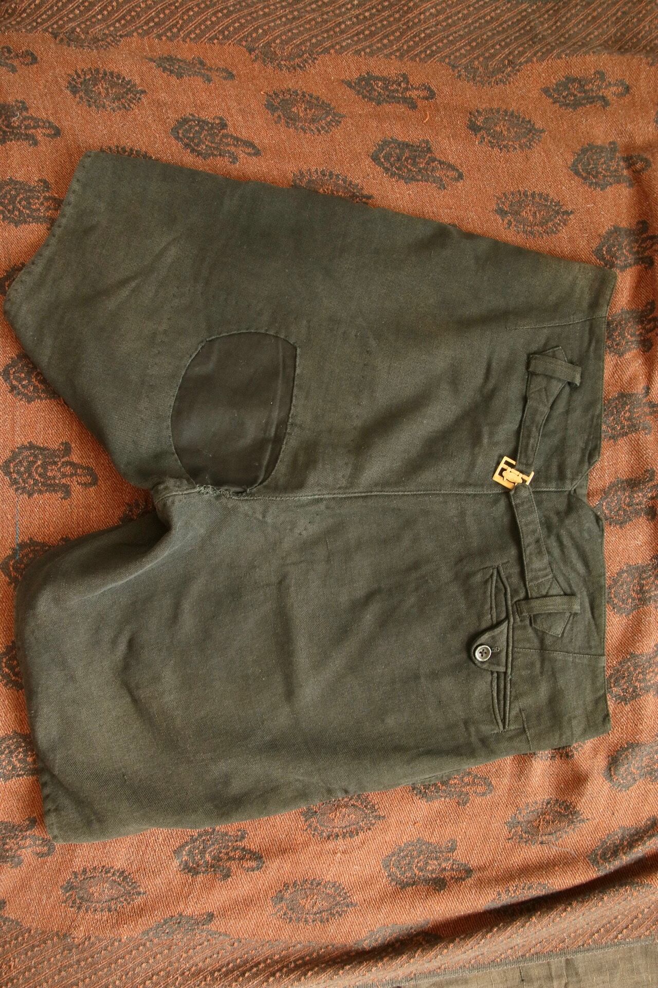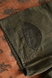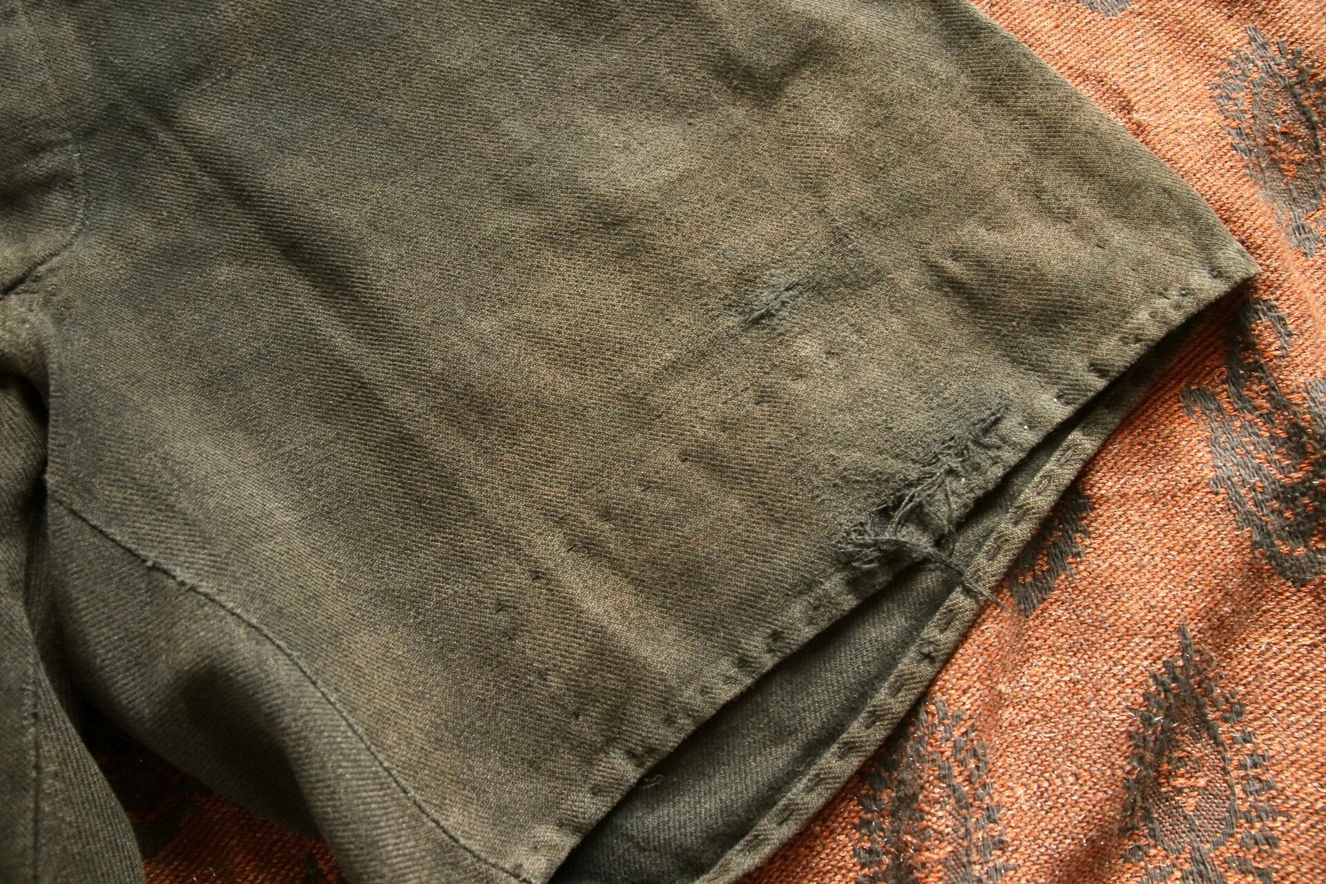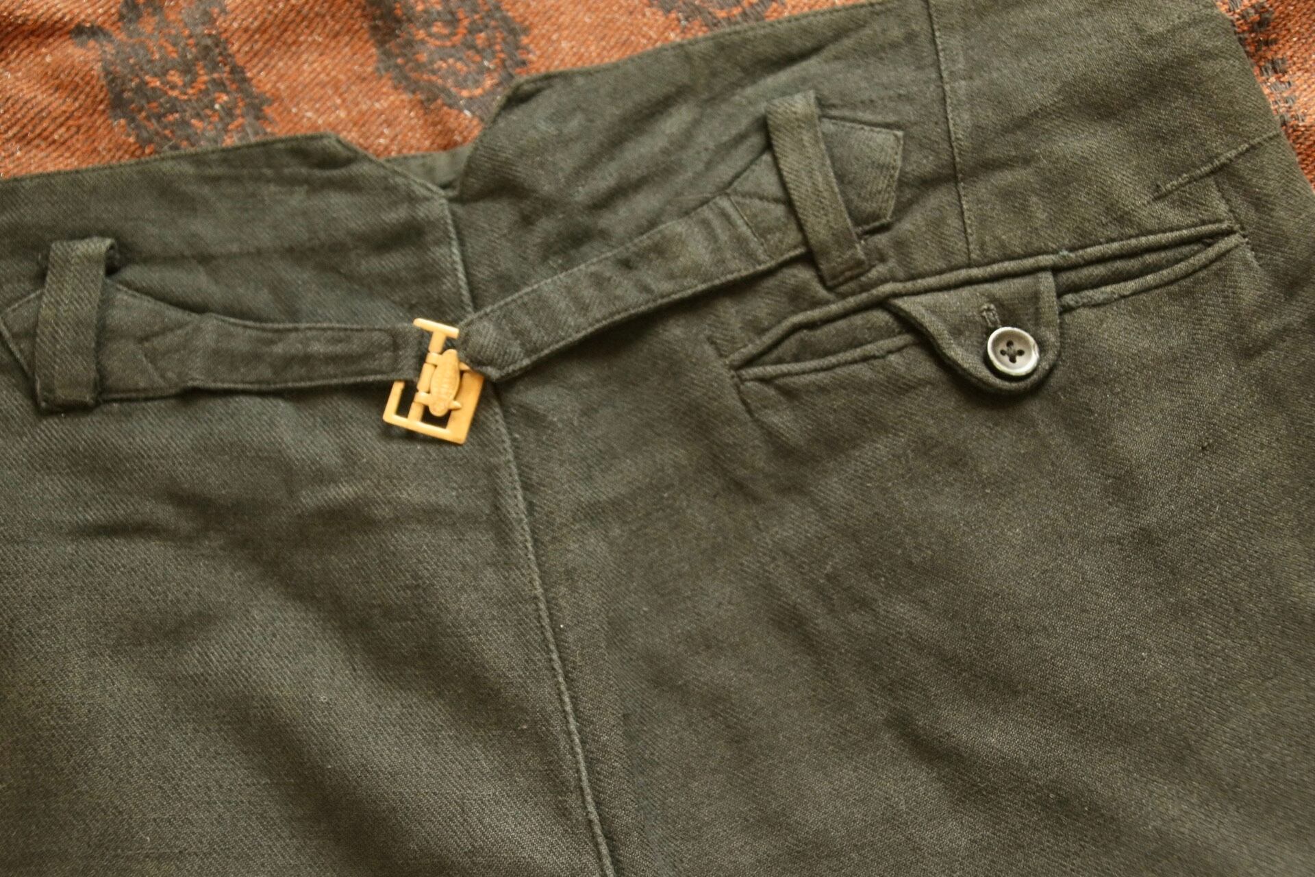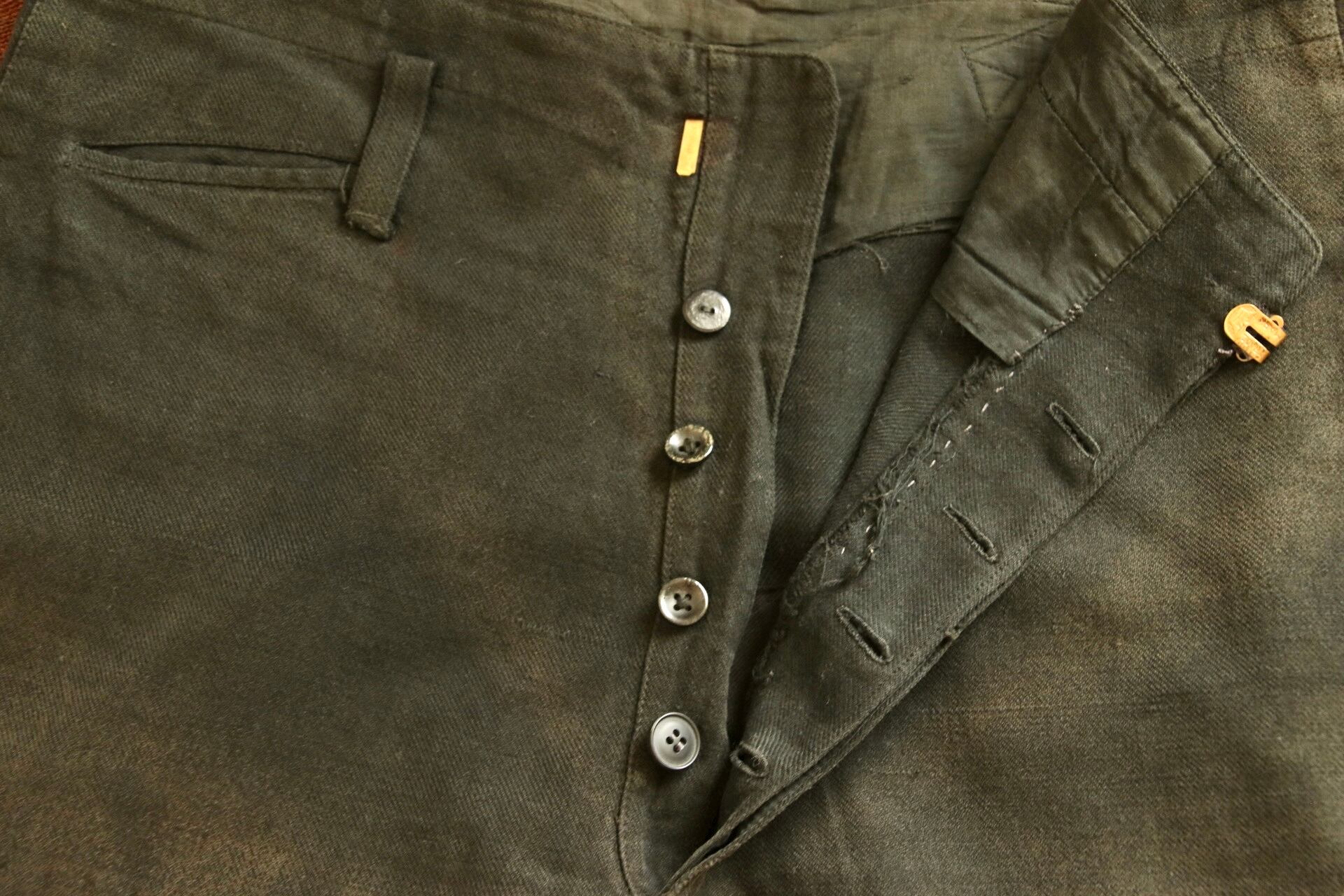 1920's〜1930'sと思われるヴィンテージハーフパンツ。染めが淡く深みのある色味に経年変化しています。パッチワークとコインポケット、さらに針式シンチバック付きのハーフパンツというコレクター仕様の逸品。