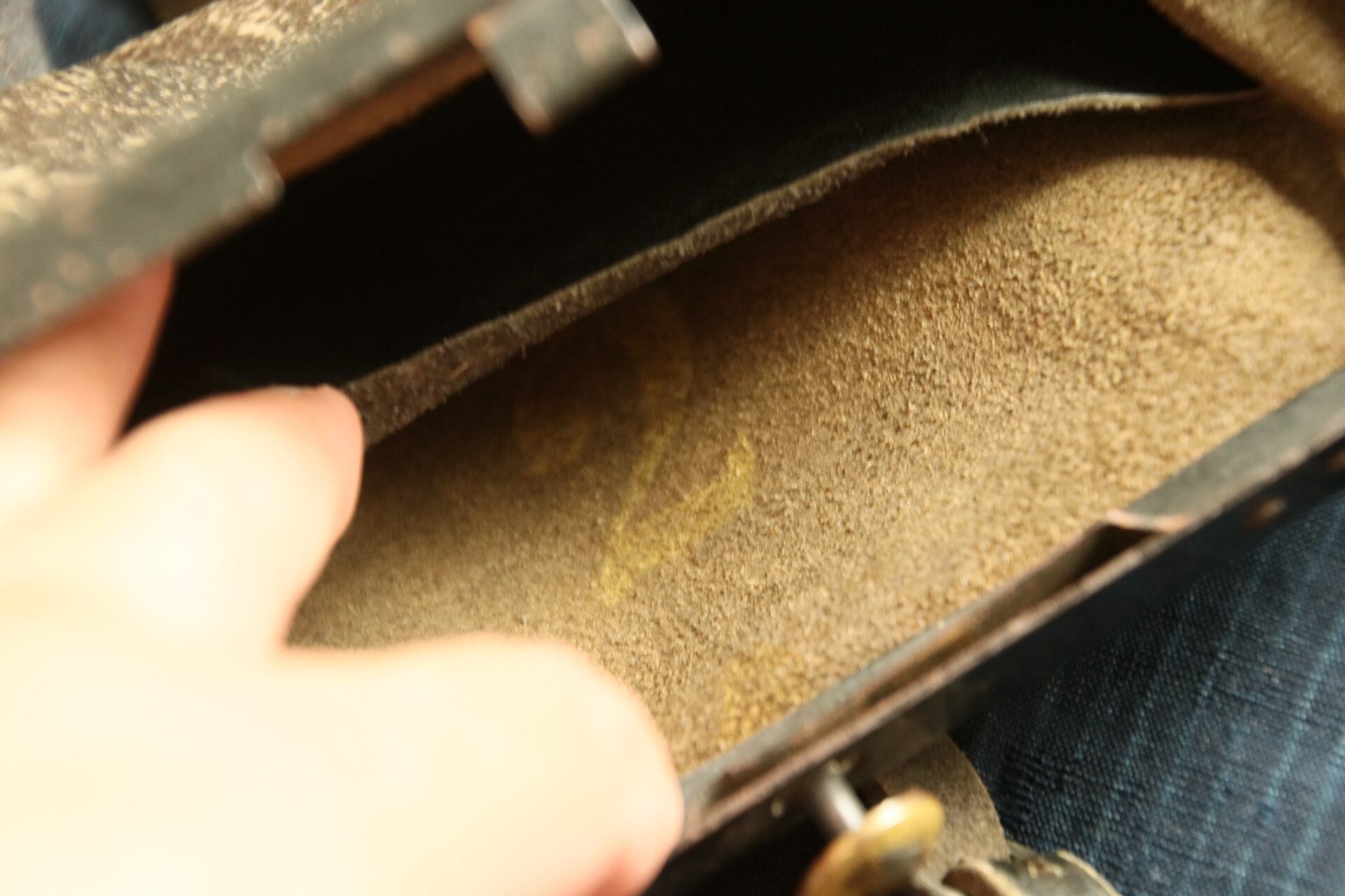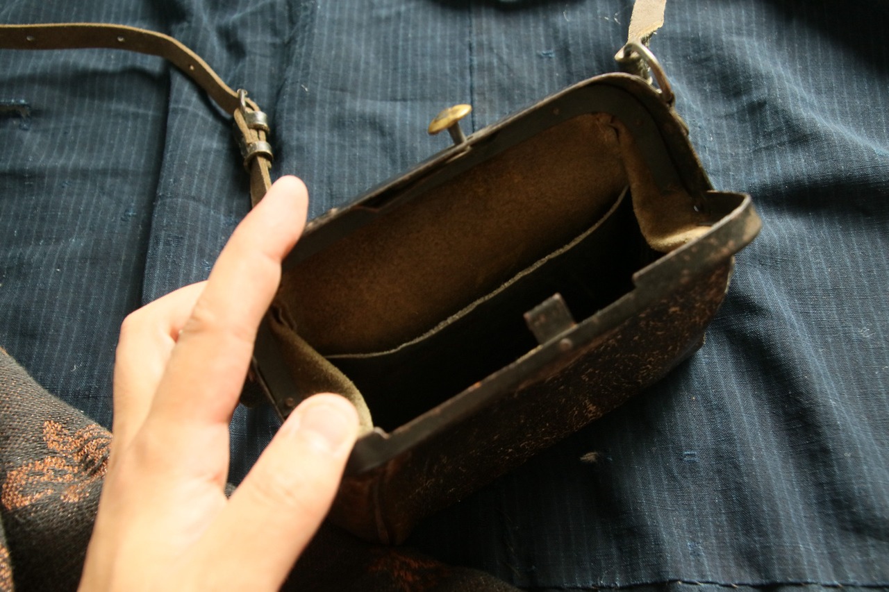 革もよい状態で残っており、内側の仕切りと「2」の文字はかつての公的機関の「用の美」、その名残りといえるでしょう。