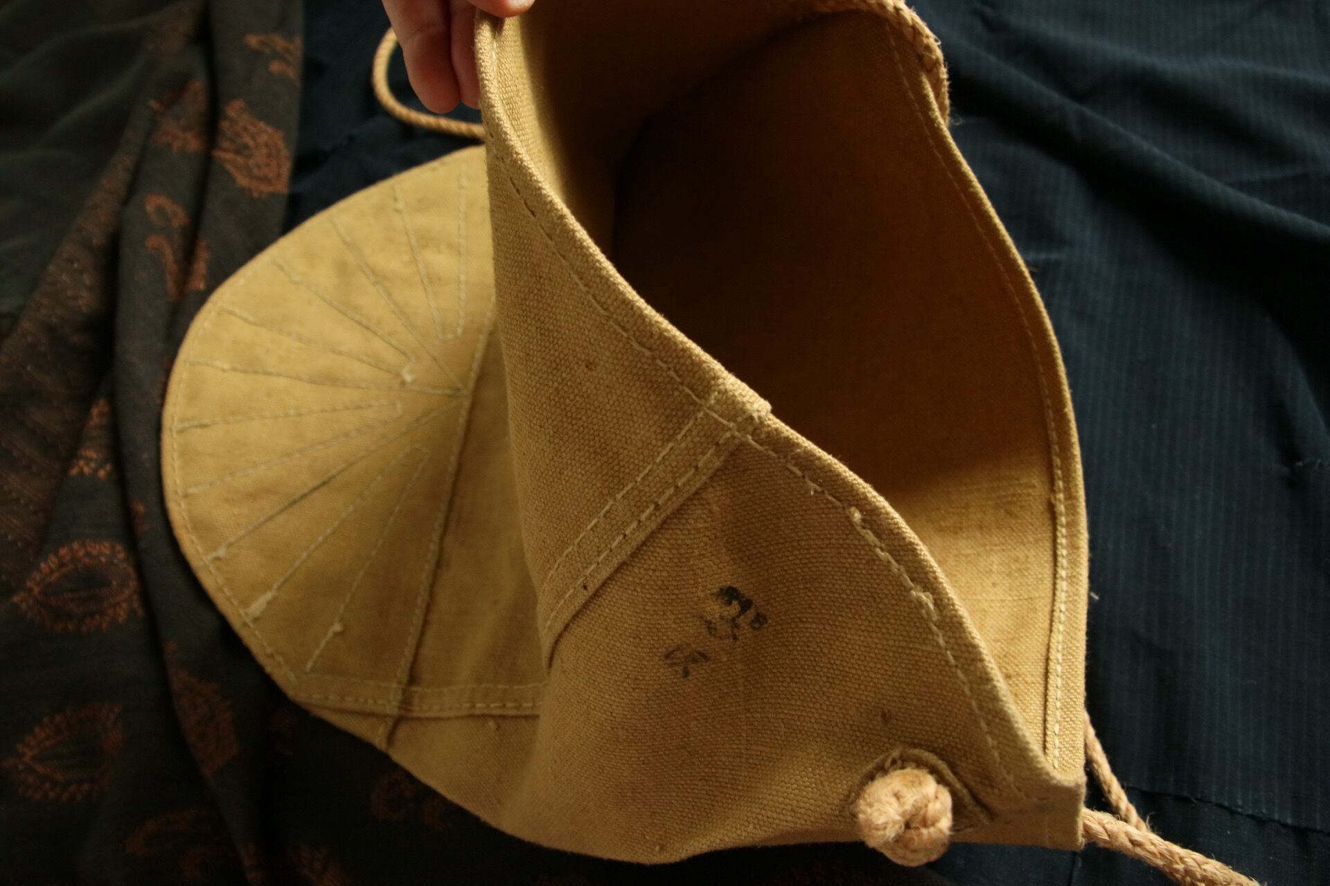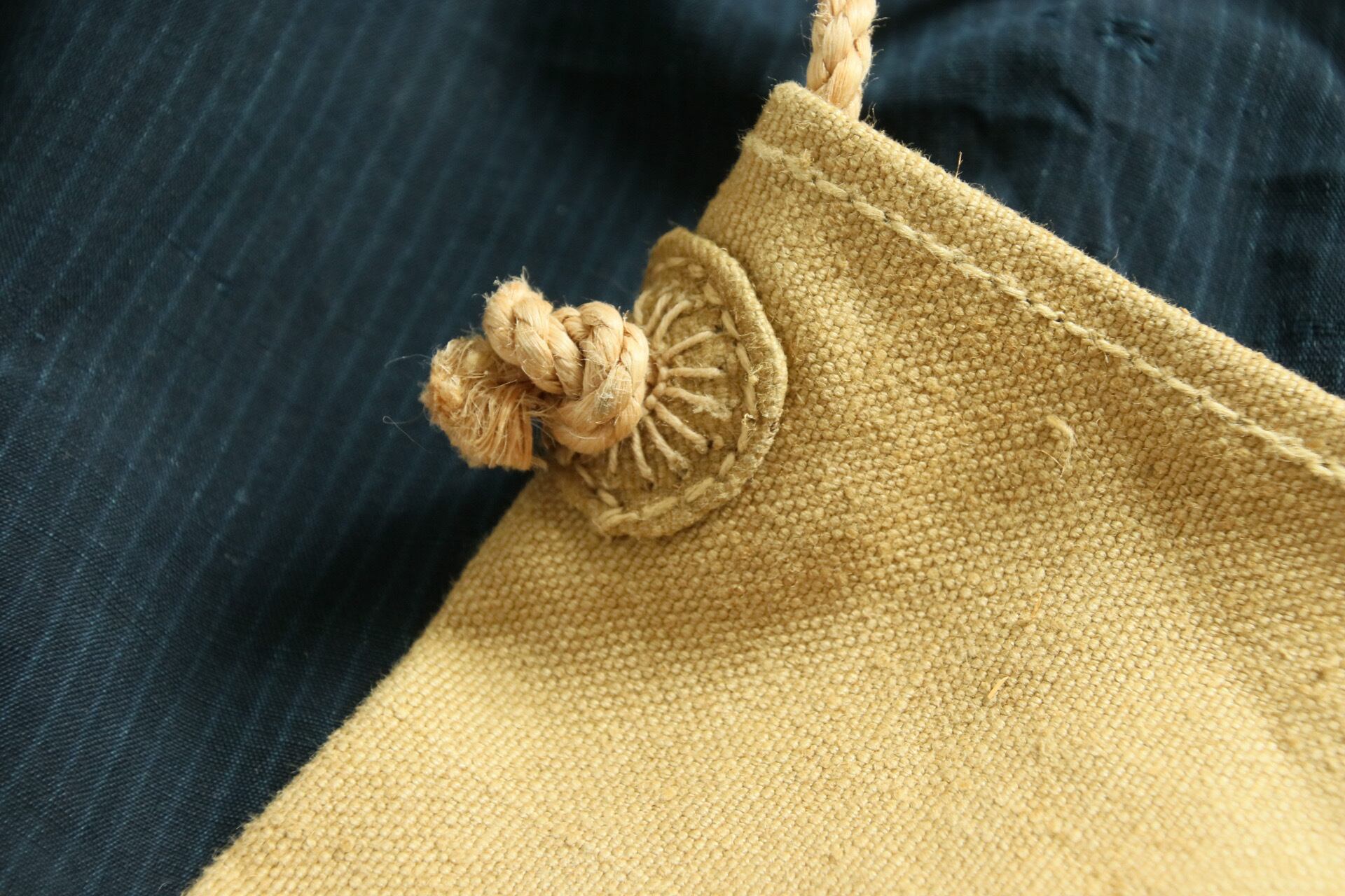 ロープ穴の縫い方に、当時の手仕事がうかがえます。
