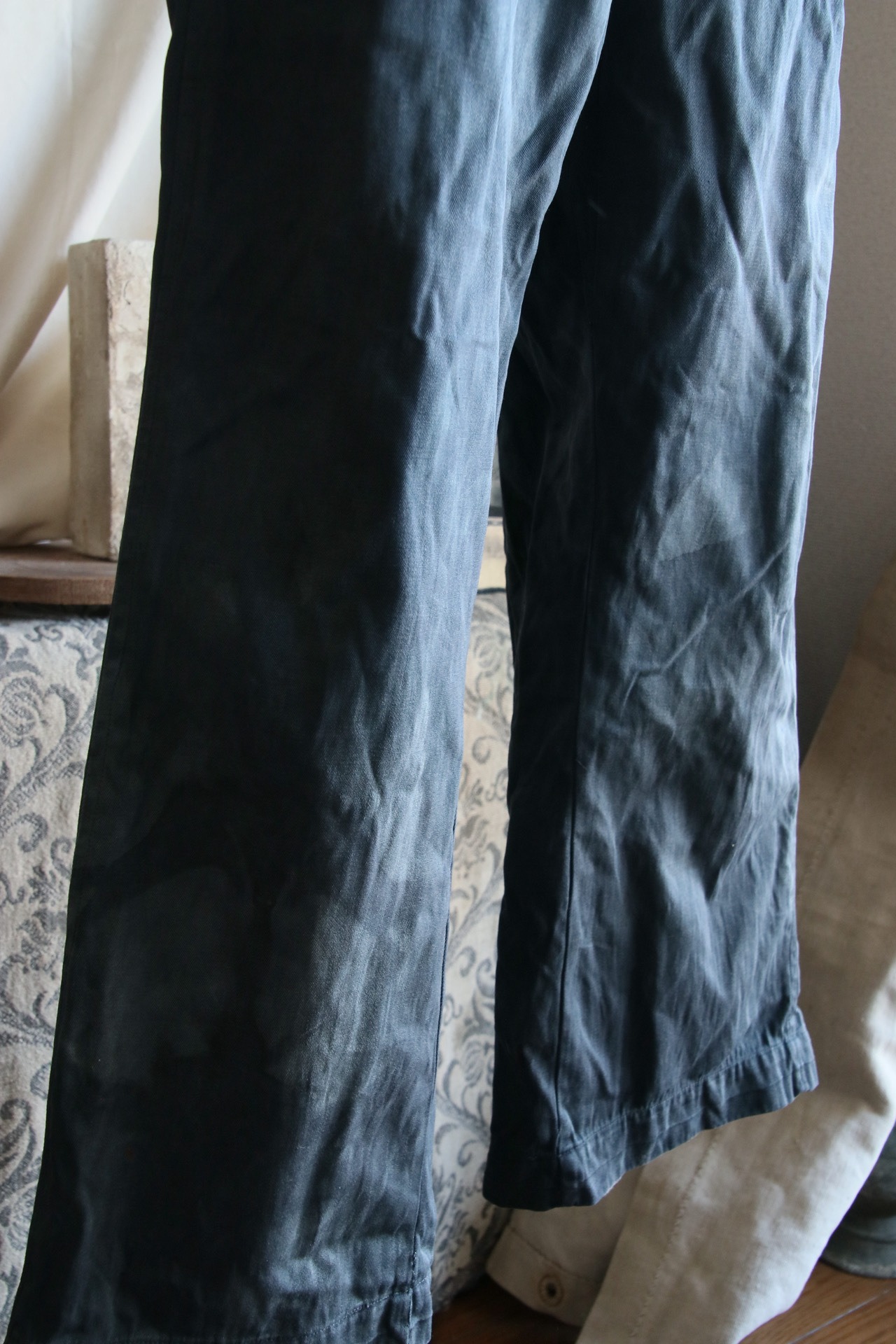 黒で後染めされているもので、炭墨のようにフェード感のある色落ちは、さながら迷彩柄のように育っています。