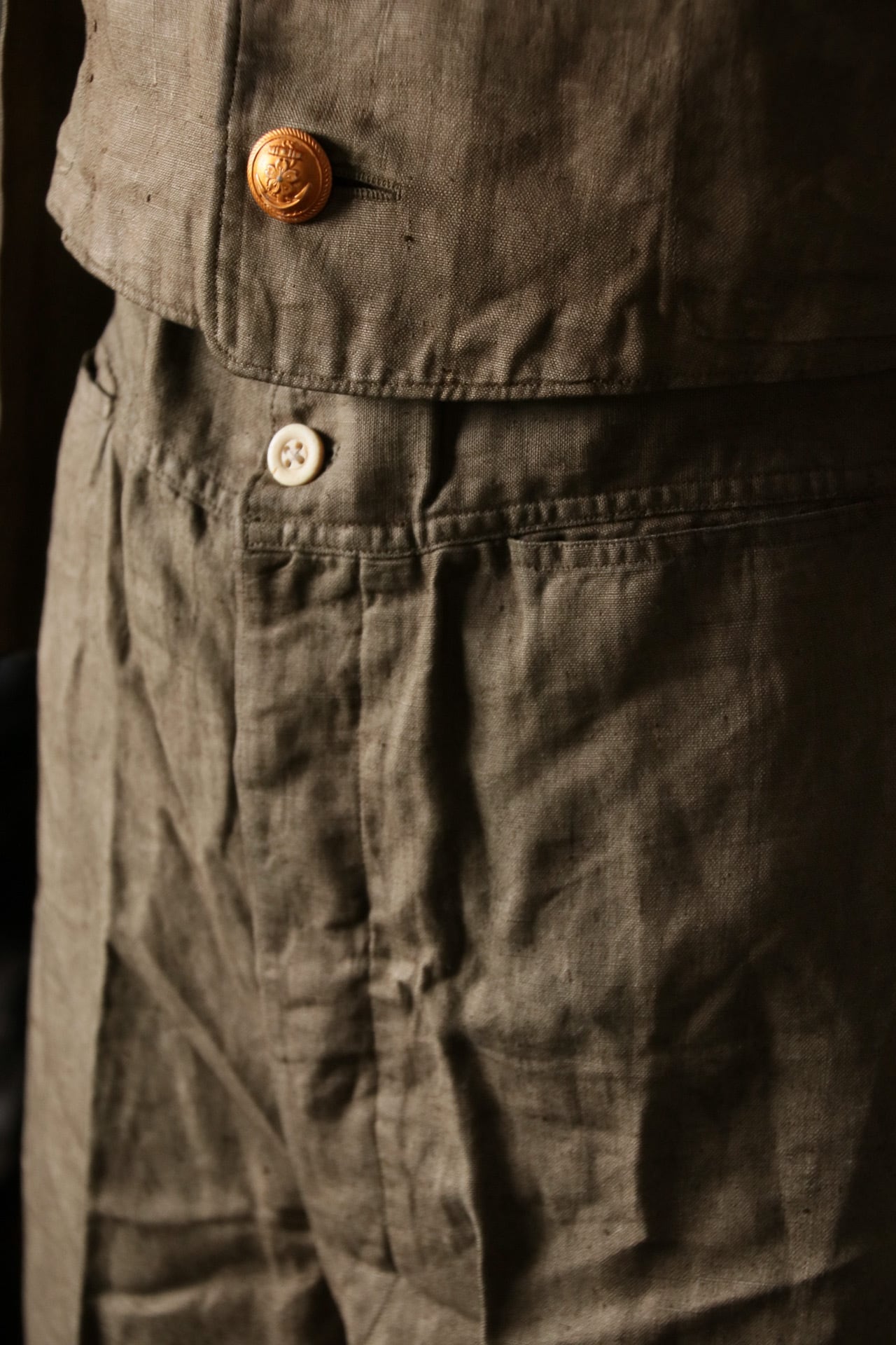 セットアップでデッドストック。状態もよく、サイズさえ合えば真夏でも快適な麻生地の着心地に魅了されることでしょう。
