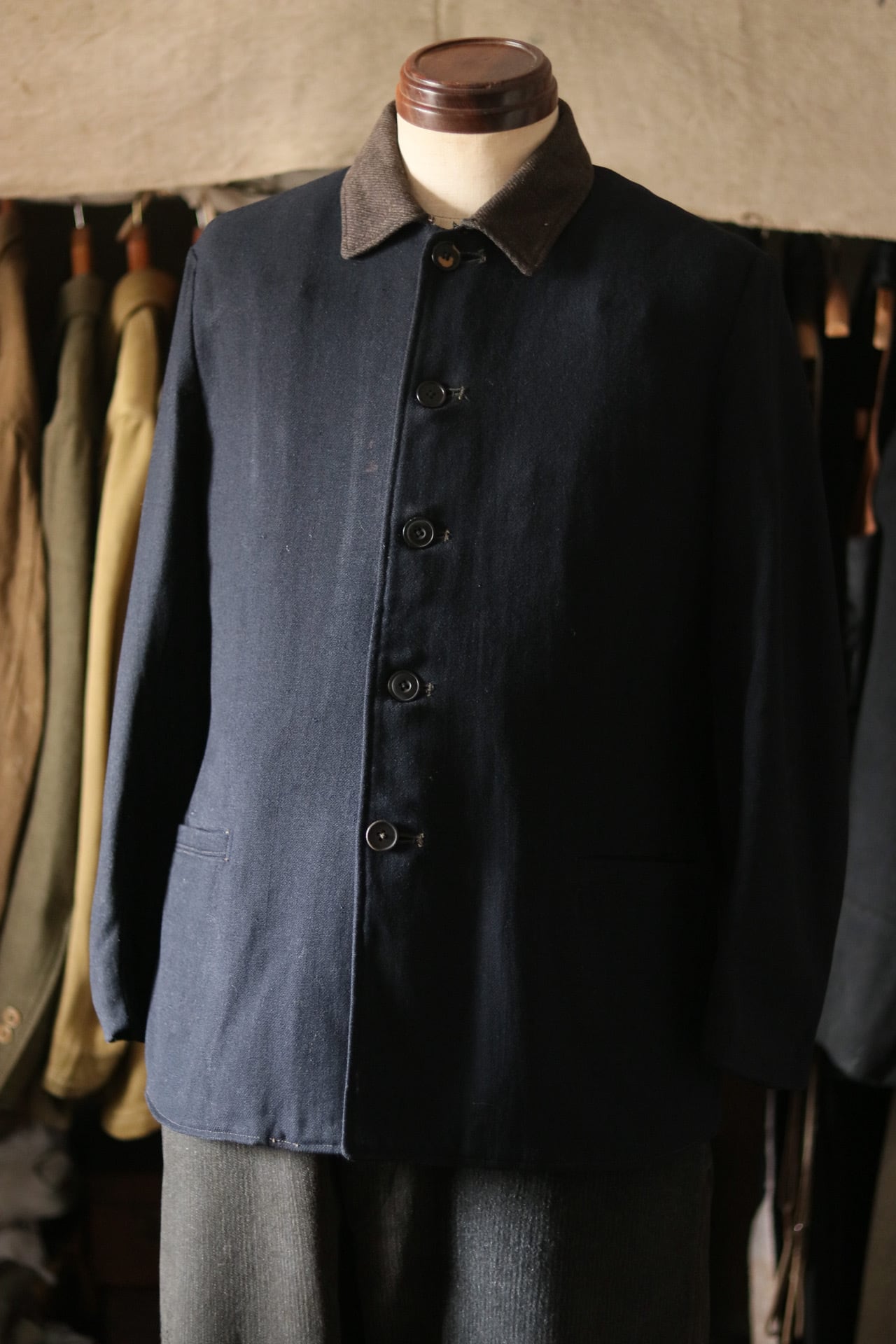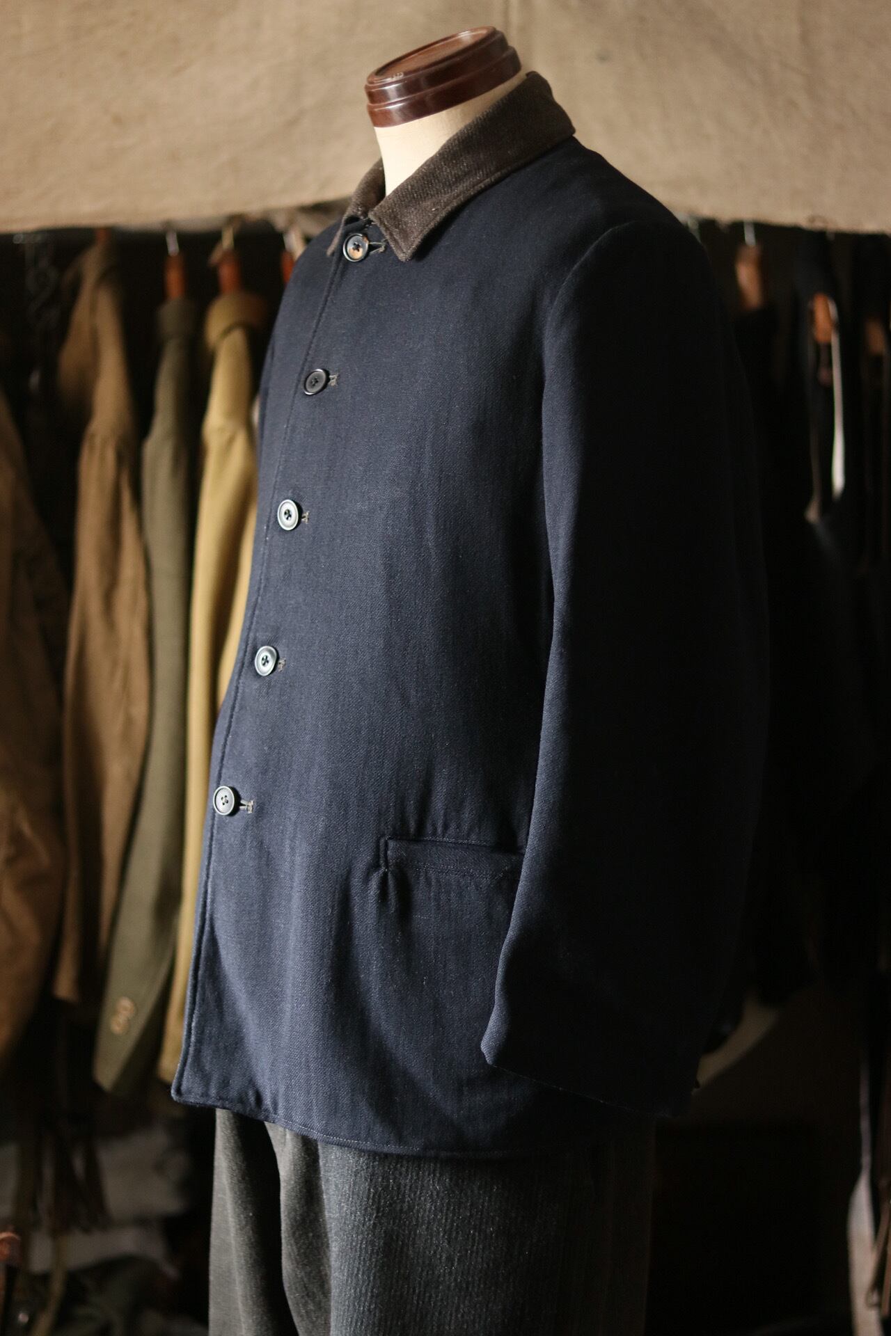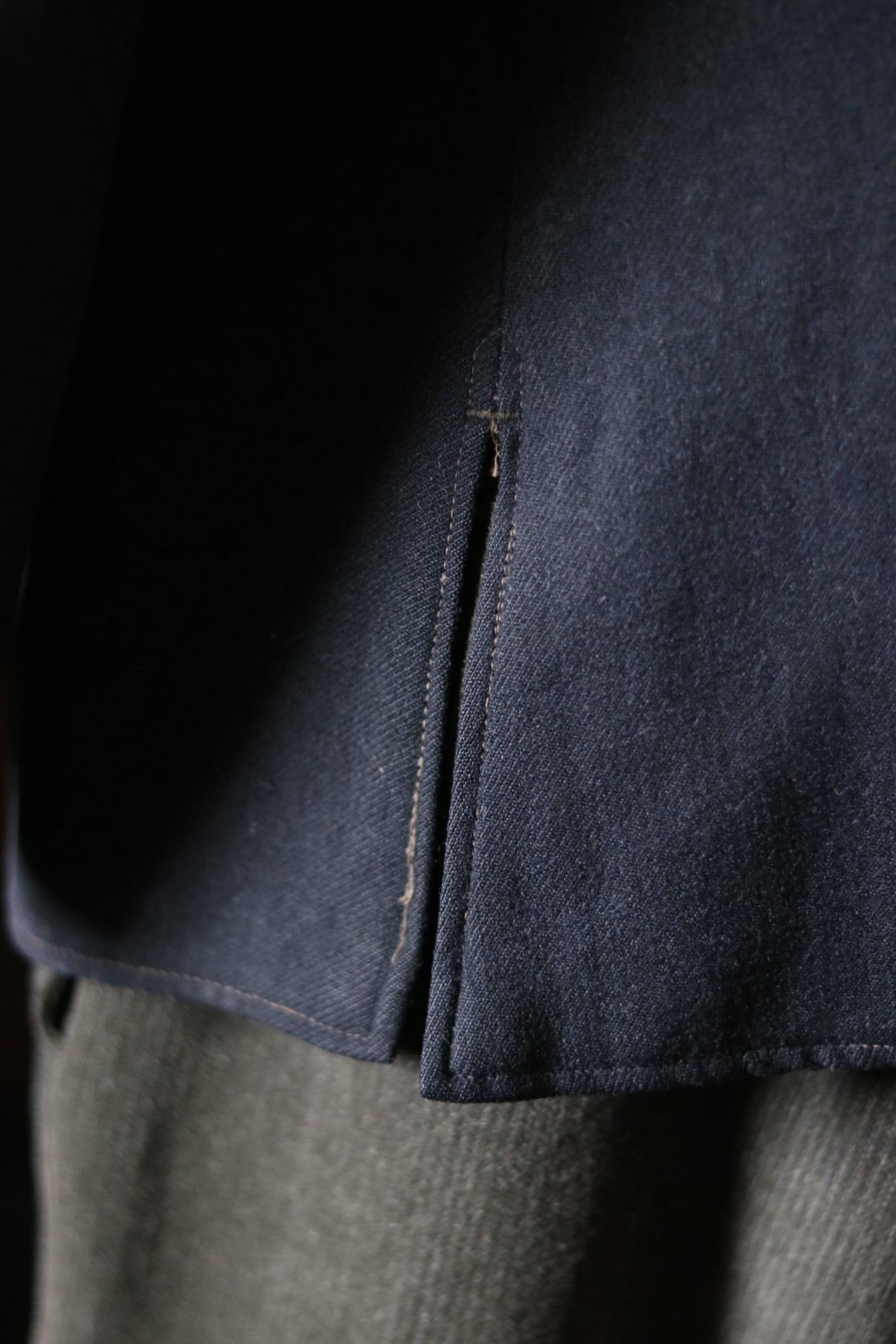 旧日本海軍のウールジャケット。切替の襟と縮綿の総裏は特別な仕様です。美しくシェイプしたウエスト回りのシルエット。
