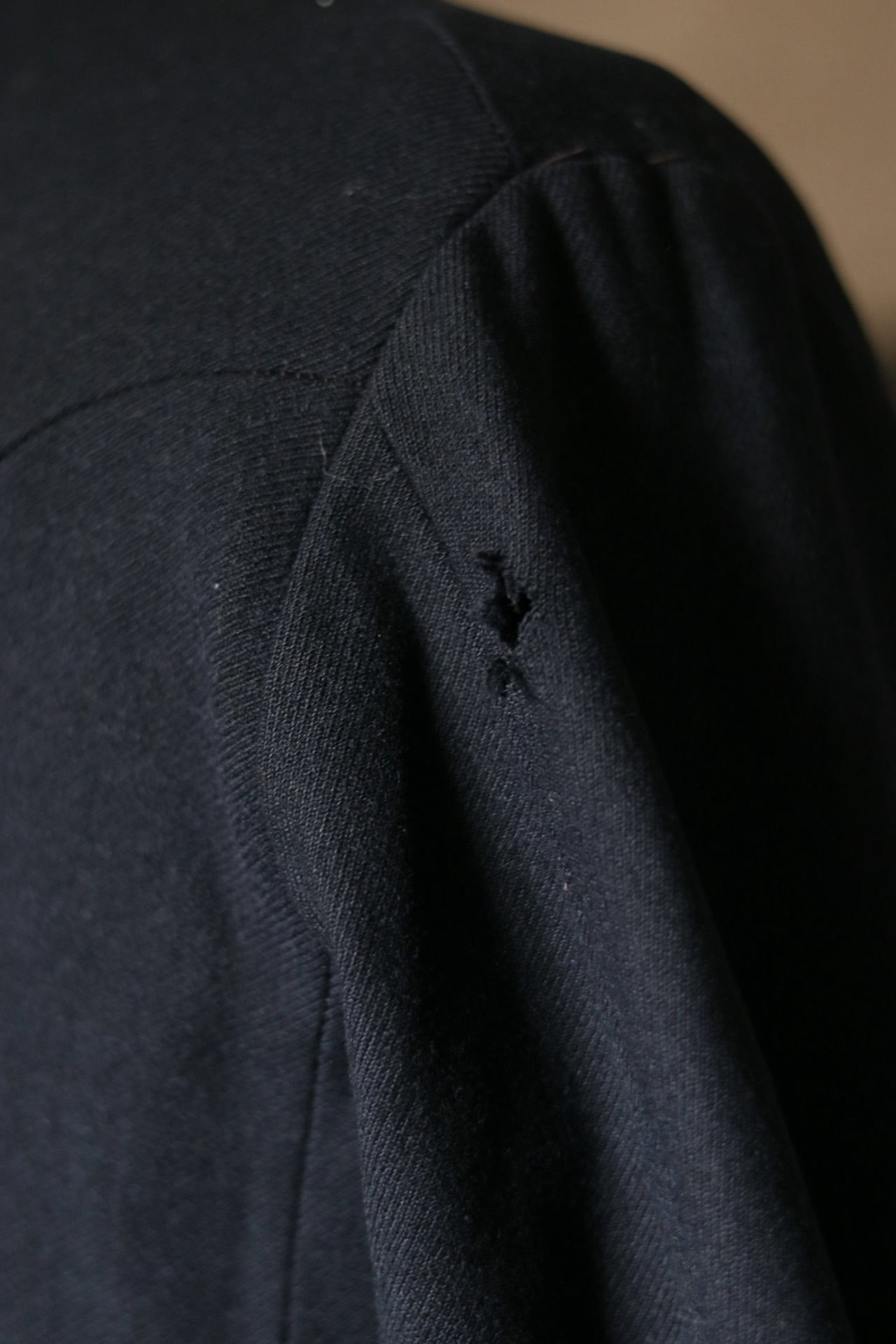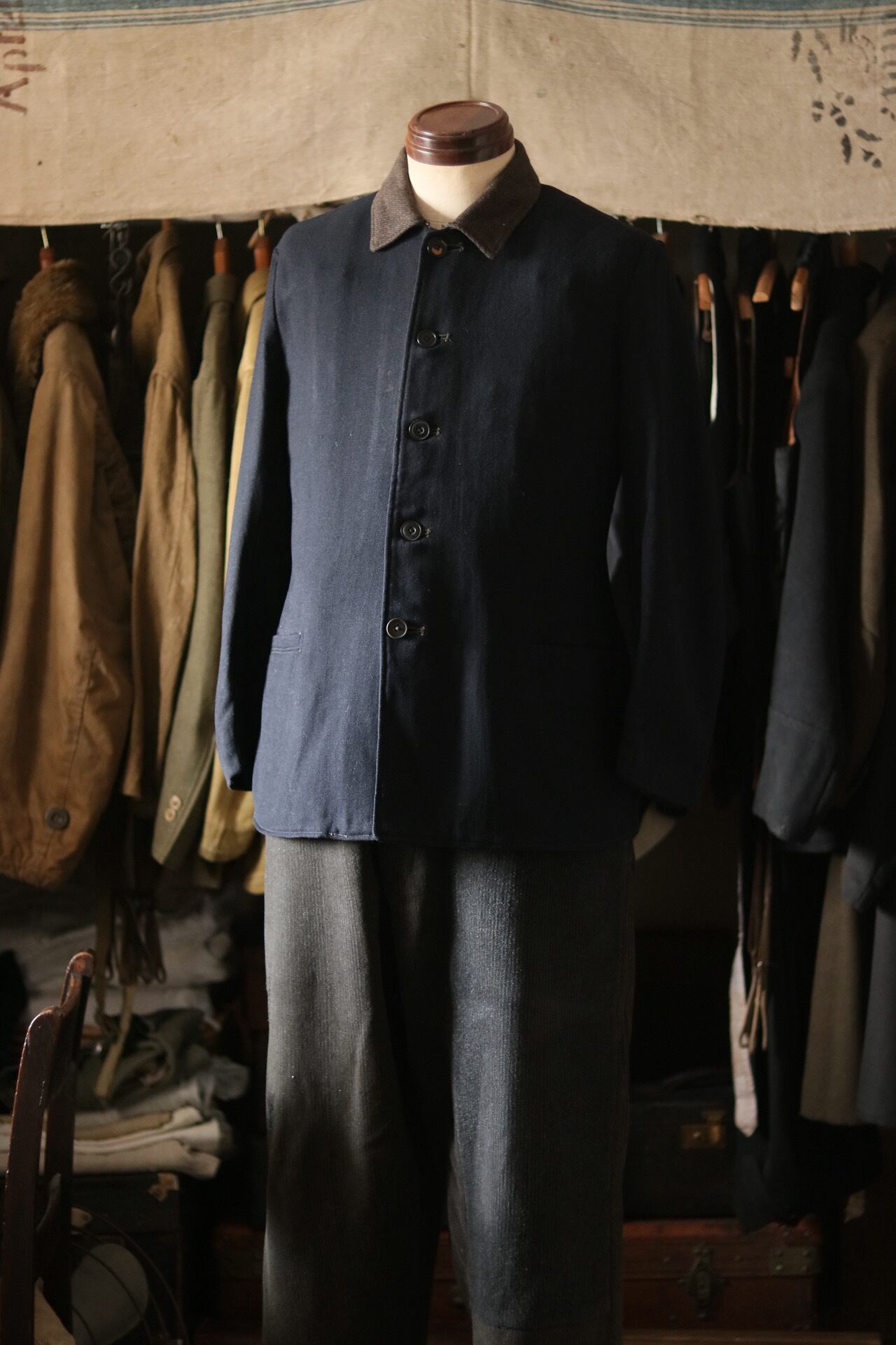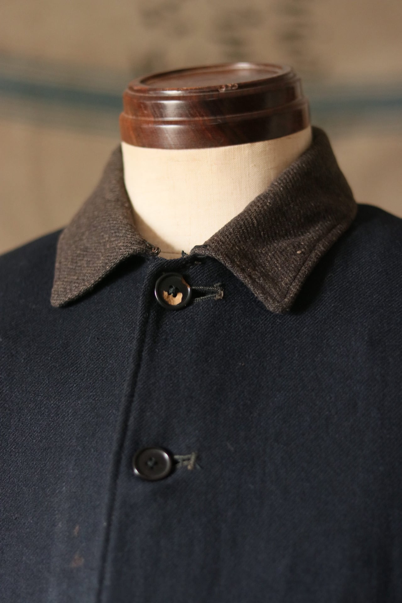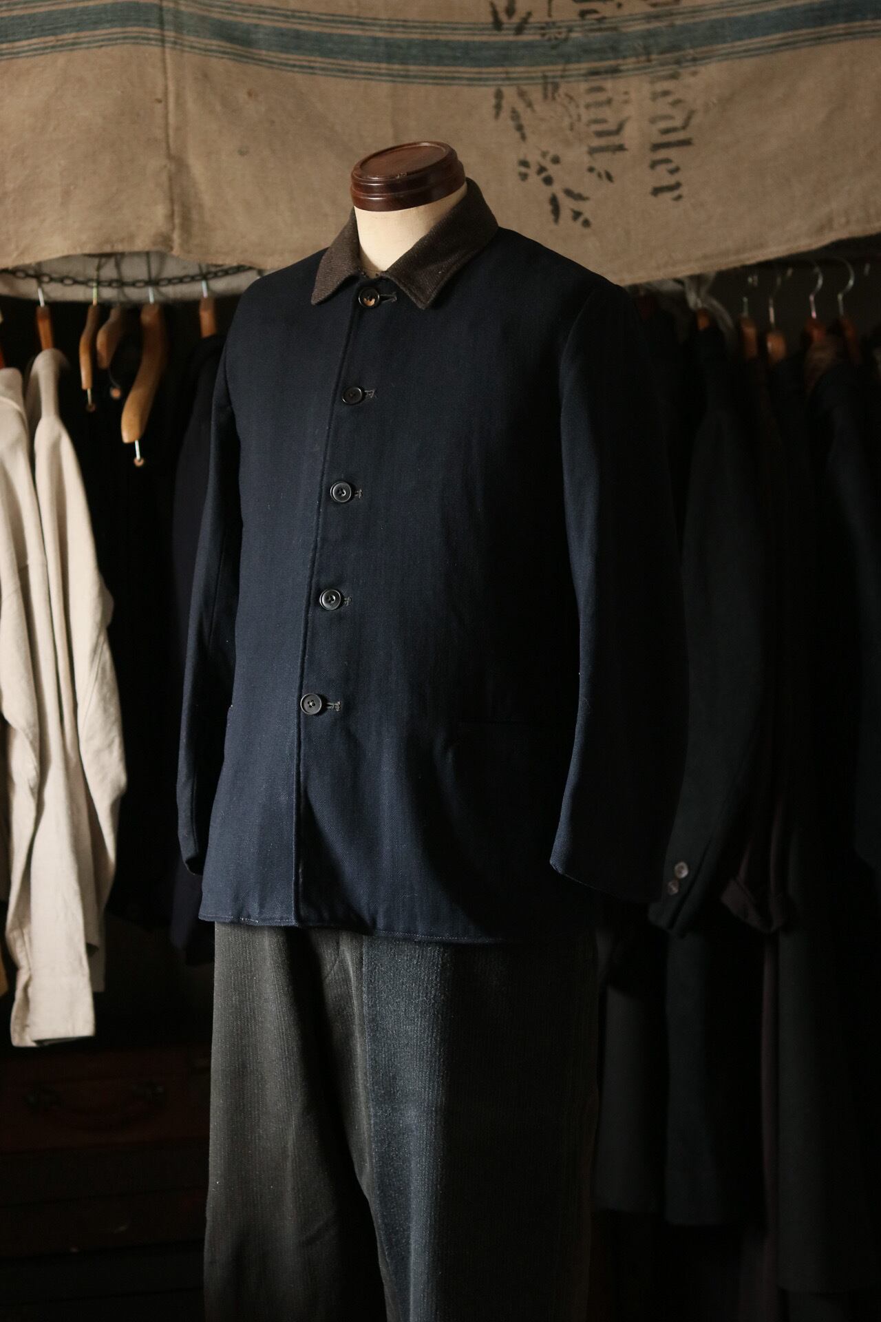 旧日本海軍のウールジャケット。切替の襟と縮綿の総裏は特別な仕様です。美しくシェイプしたウエスト回りのシルエット。