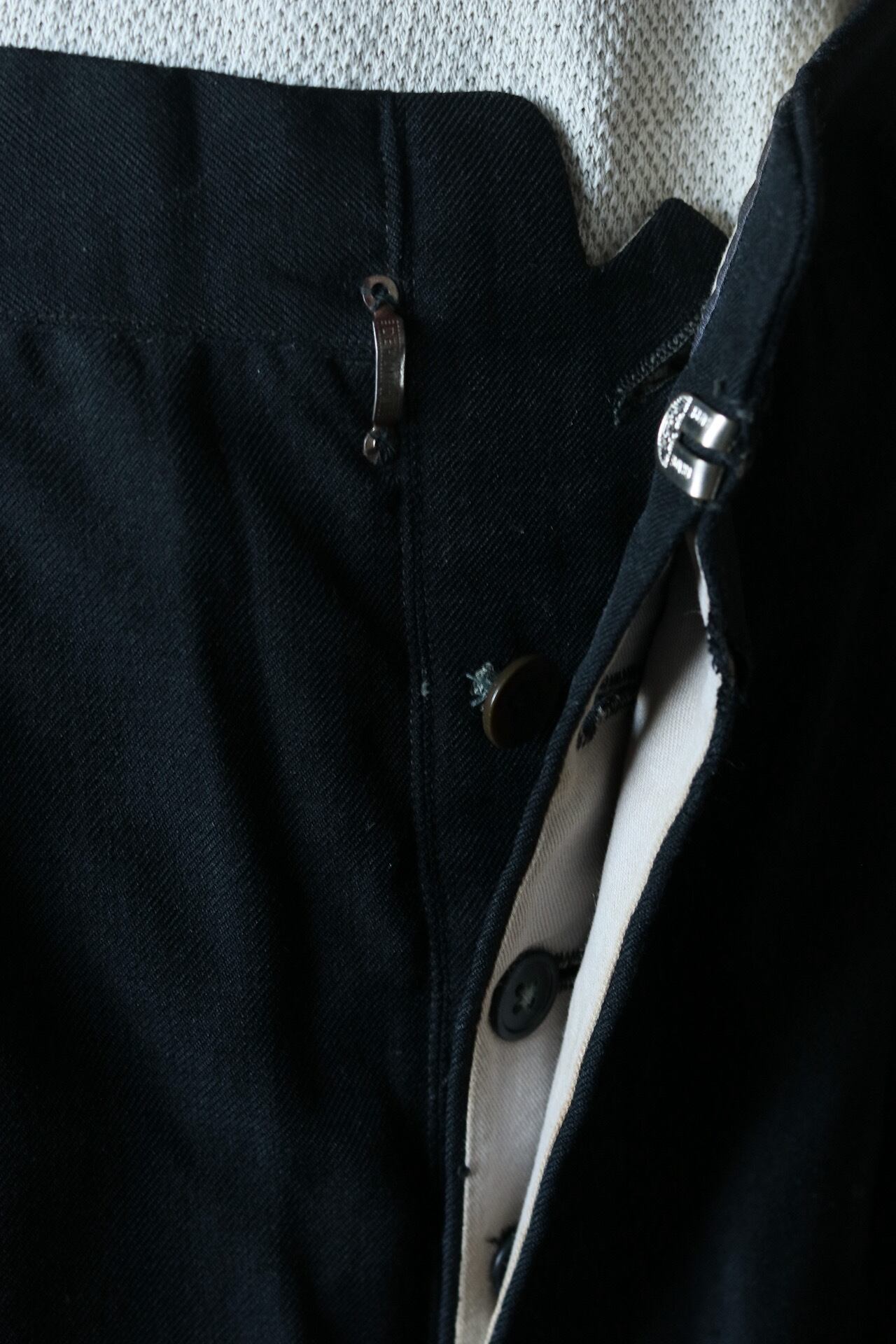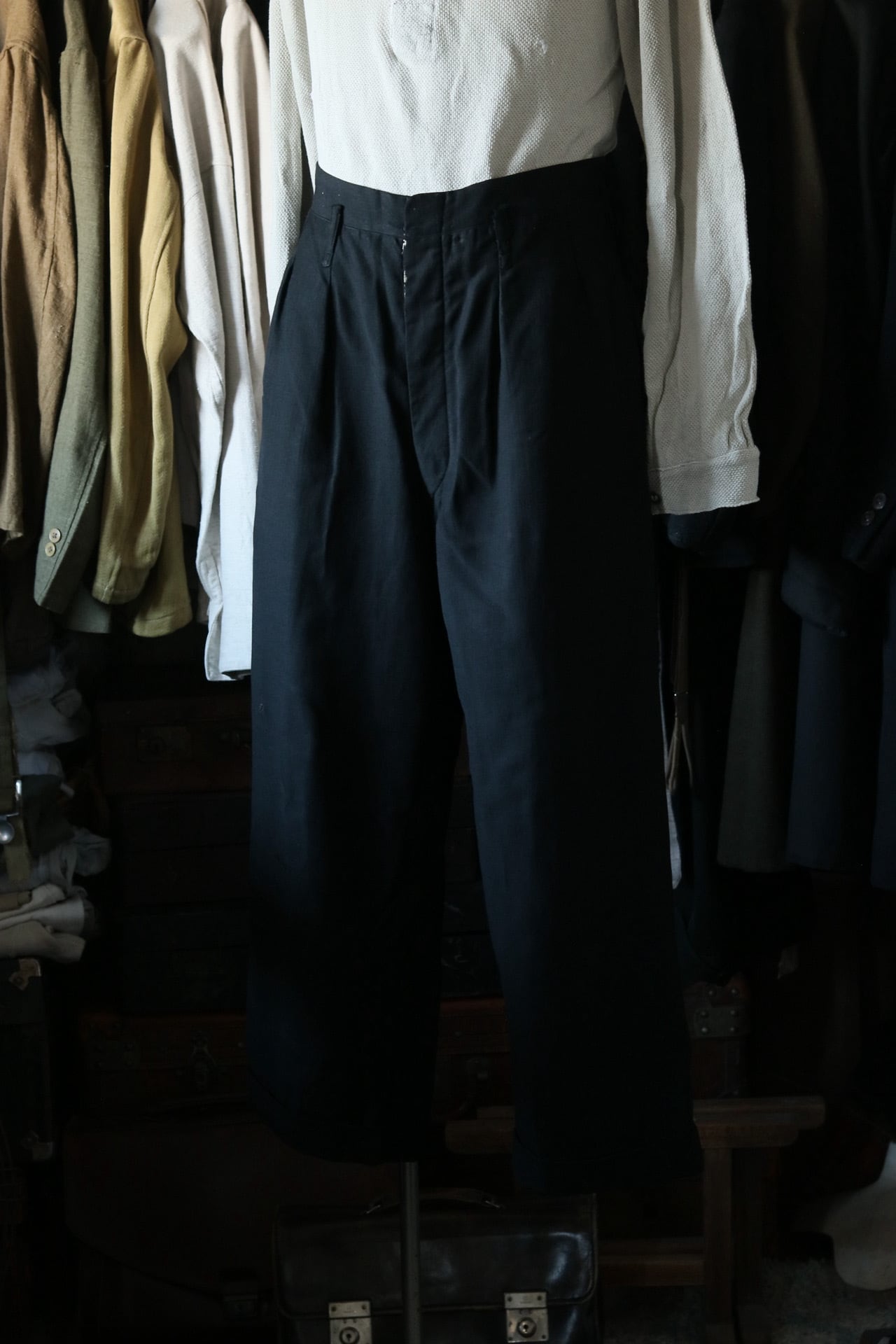 昭和初期ころの日本のヴィンテージパンツ。とてもなめらかでドレープ感のあるウール生地で作られており、歩くたびに心も躍る一着。